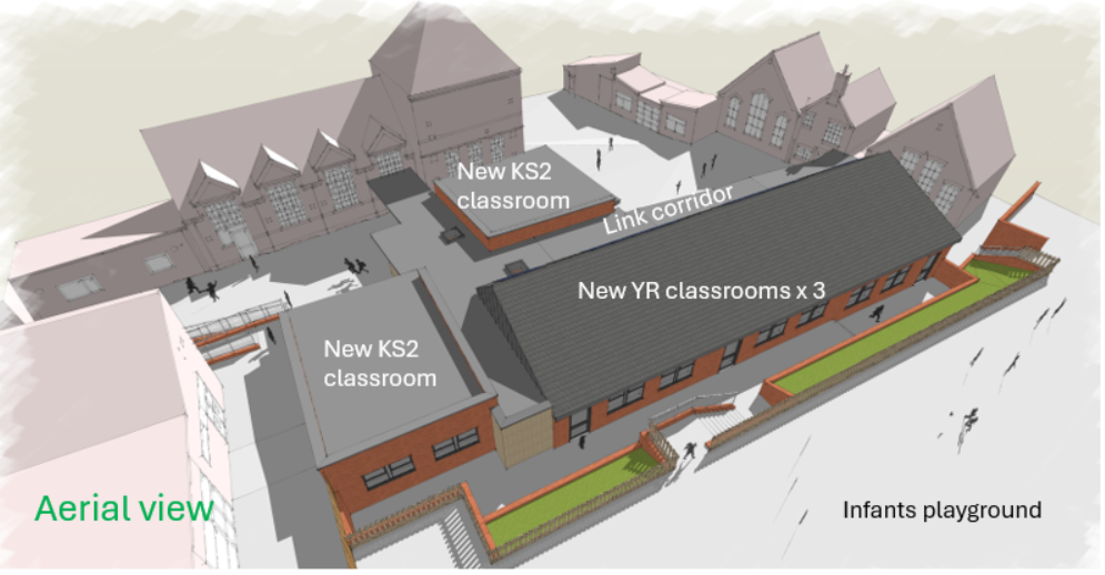 Our school is having an extension of five new classrooms which is currently being built to provide a link corridor between the former infant and junior buildings, with a partial handover scheduled for the end of summer holidays. The new Reception classrooms will be handed over to the school at the start of September. With our new EYFS classrooms being based within this building, during our transition events, children will visit our current EYFS classrooms as the construction work is ongoing.